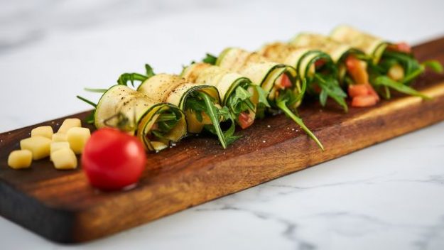 Závitky ogrilované cukety plněné sýrem a rukolou