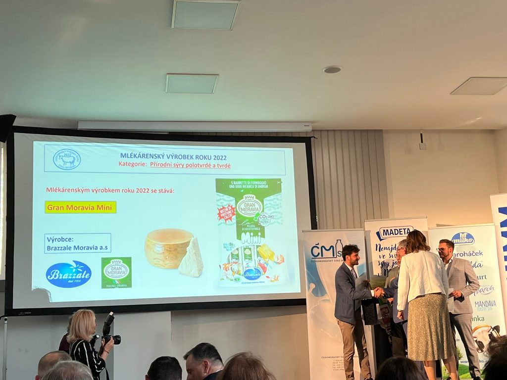 Ocenění z rukou předsedy Českomoravského svazu mlékárenského, pana Jiřího Kopáčka, převzal zástupce rodinného podniku, Alberto Brazzale.