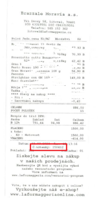 Číslo účtenky zákazník najde na místě vyznačeném na ilustračním fotu v soutěžním formuláři, jiná čísla nebudou akceptována.