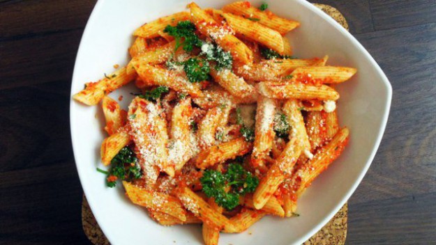 Těstoviny s pestem připraveným z paprik, kešu oříšků Gran Moravia a bylinek.