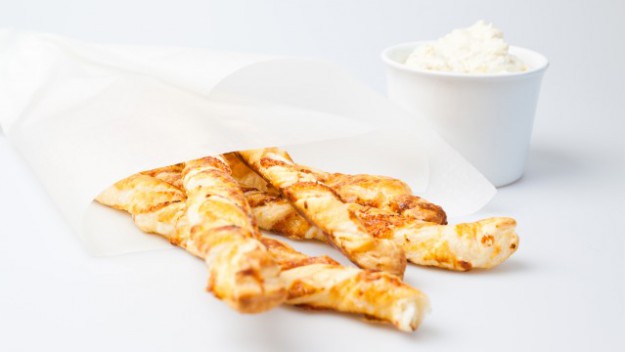 Křupavé zatočené tyčinky twister s náplní z ricotty a sýru Gran Moravia.