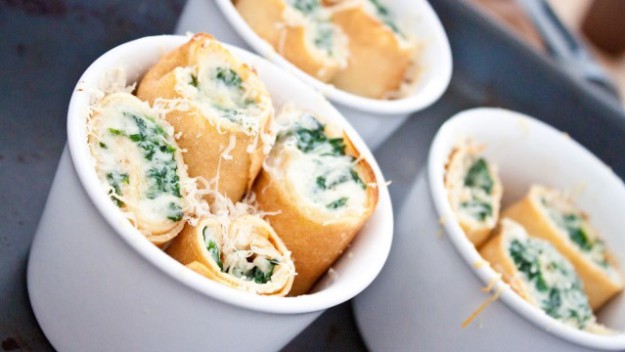 Slané italské palačinky plněné ricottovým krémem se špenátem.