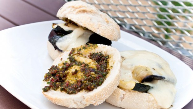 Vychutnejte si dokonalé spojení grilované zeleniny, rajčatového pesta a sýru Provolone spolu s křupavým pečivem.