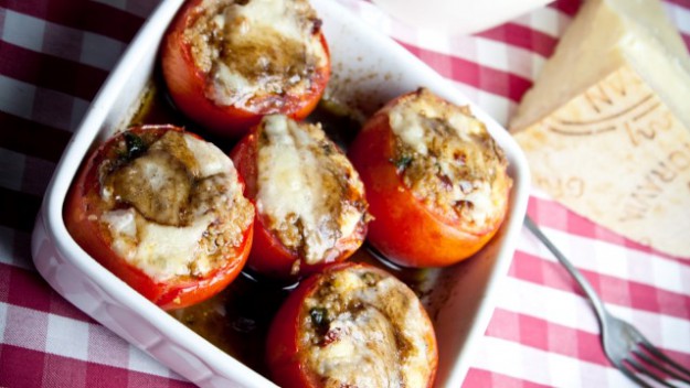 Tato plněná rajčata jsou ideálním letním předkrmem nebo spolu s kouskem pečiva také lehkou večeří, navíc je jejich příprava rychlá a jednoduchá.