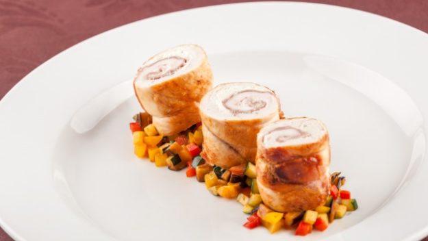 Lahodný předkrm z pečených rajčat plněných krémem s Gran Moravia.