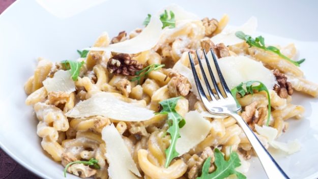 Těstoviny s domácím pestem z vlašských ořechů a ricotty.