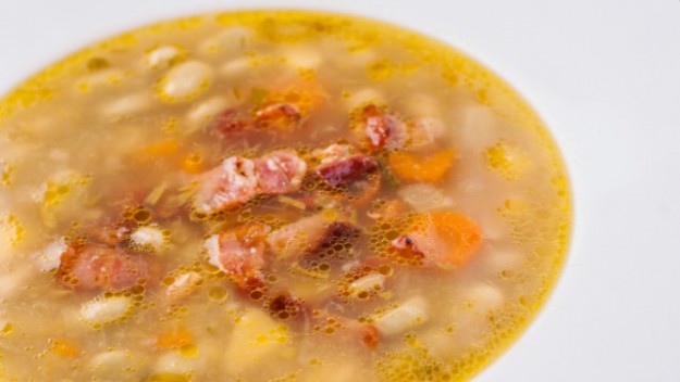 Tato polévka ze zeleniny a luštěnin je skvěle doplněna chutí opražené italské pancetty.