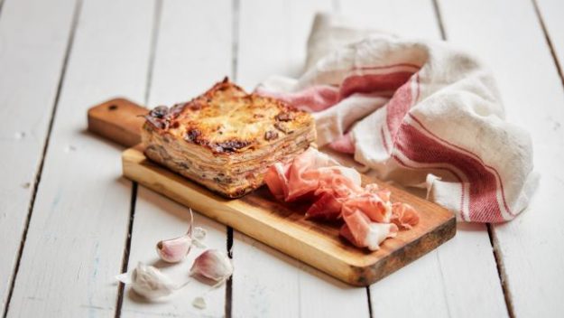 Zapékané bramborové pasticcio se sýry a prosciutto crudo