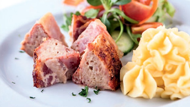Sekaná v neobvyklé kombinaci se sýrem Mascarpone a s krustou ze syrové šunky.