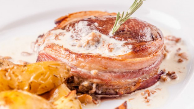 Vysoký roštěnec s pancettou a hříbkovou omáčkou