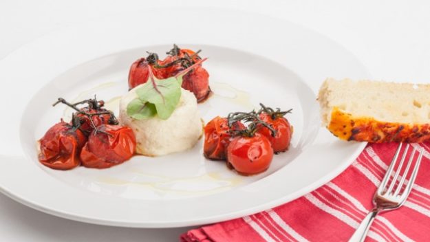 Mousse se sýrem Gran Moravia a pečenými rajčátky