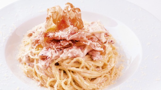 Jednoduchý a rychlý recept na těstoviny se slaninou, sušenými rajčaty a hoblinkami sýru Gran Moravia.