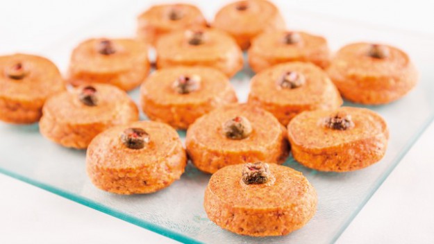 Křupavé jednohubky s ricottovým krémem, cuketou a sušenou šunkou.